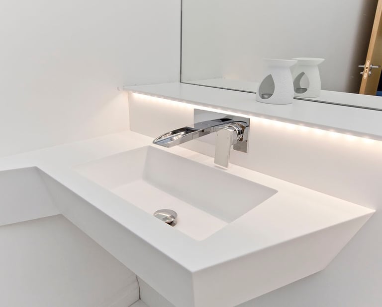 High-Quality Materials and Finishes: We use only the finest materials and finishes to ensure that your bathroom is both beautiful and durable. Our selection includes luxurious stone surfaces, high-end tiles, and premium fixtures that combine form and function. Whether you choose marble, granite, or innovative materials like Corian®, we ensure that every choice enhances the aesthetic and performance of your bathroom.