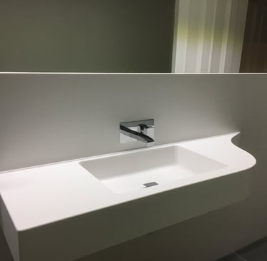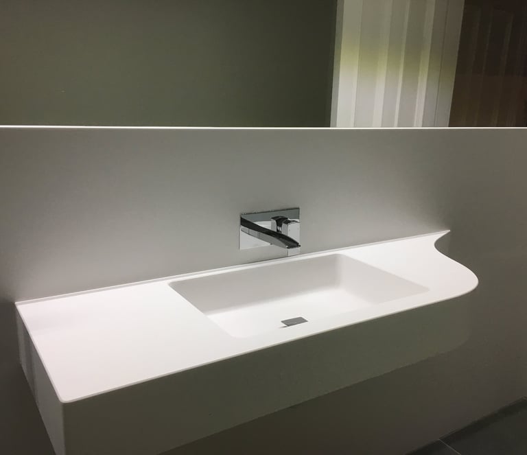 The Highlands Retreat: Our client wanted a luxurious bathroom that felt like a private spa. We achieved this by combining high-end materials, custom cabinetry, and innovative lighting solutions. The use of Corian® in the vanity and bathtub areas provided a seamless, elegant finish that enhanced the overall sense of luxury.