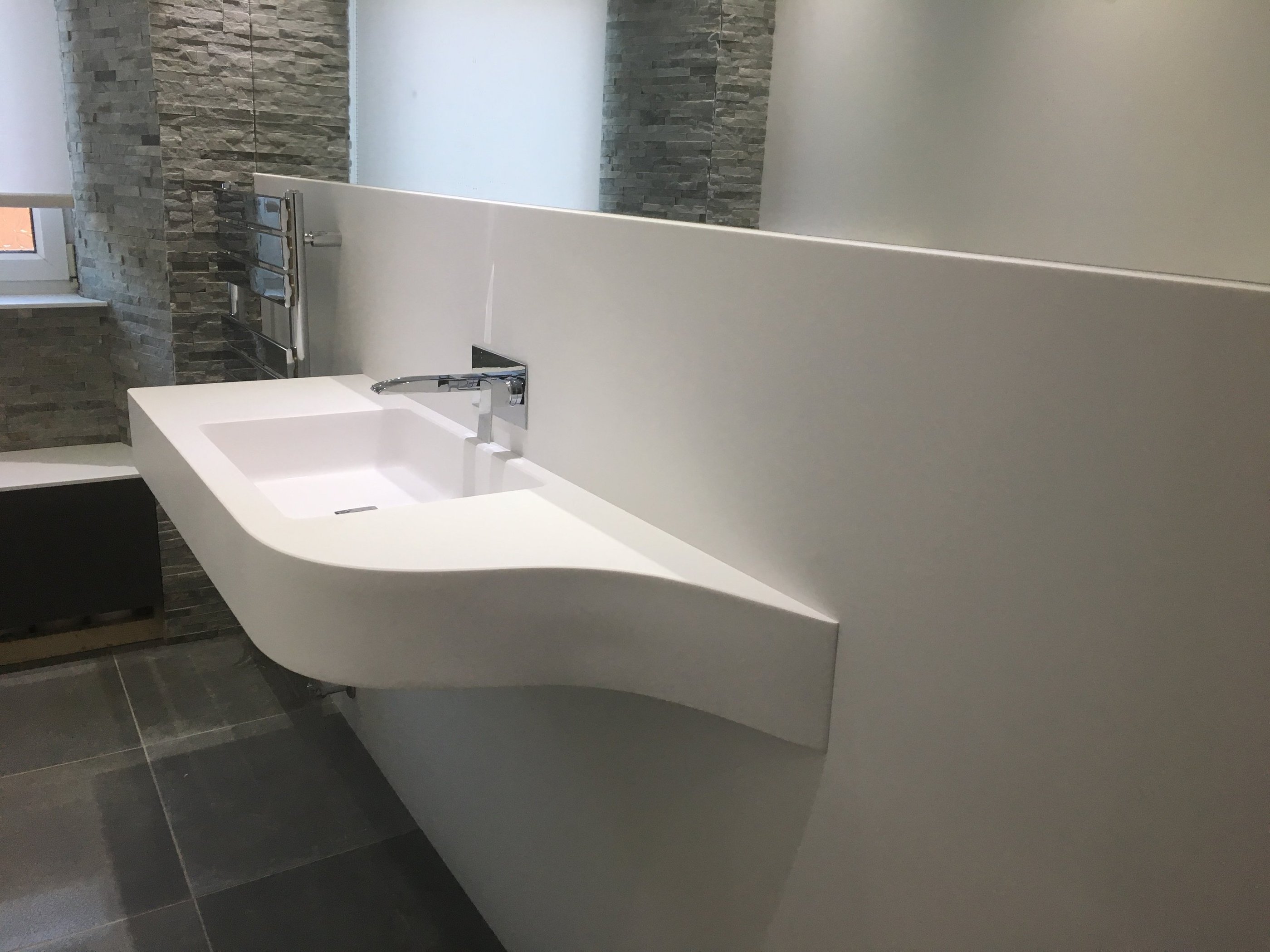 At the forefront of modern bathroom design, Corian® solid surfaces offer unparalleled elegance and versatility. One of the standout features in our latest Corian® bathroom project is the meticulously crafted sink, designed not only for aesthetic appeal but also for practical functionality. This unique sink design showcases our commitment to innovation and attention to detail, ensuring that every aspect of your bathroom experience is both beautiful and efficient.