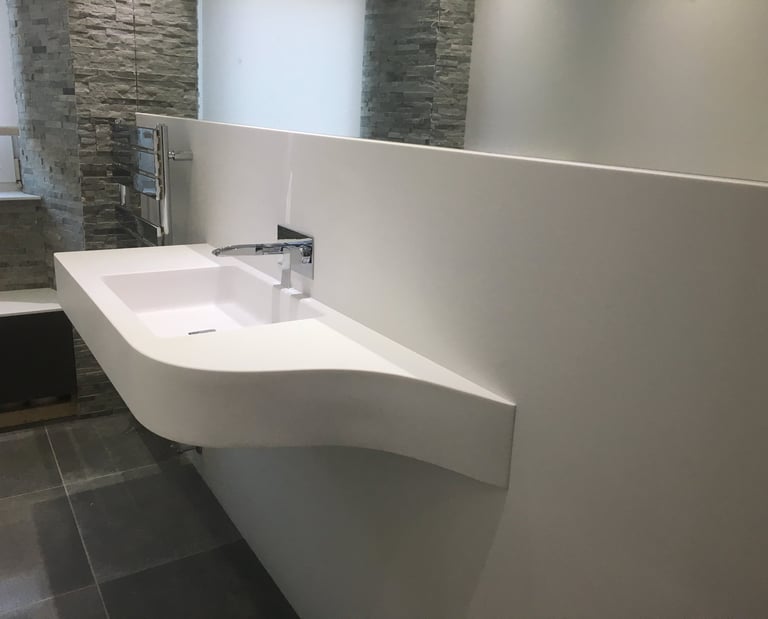 Experience the perfect blend of design and functionality with our bespoke Corian® bathroom solutions. Contact us today to explore how our innovative sink designs and other custom features can transform your bathroom into a space of elegance and efficiency.